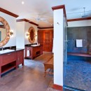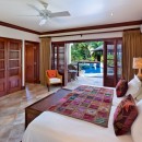 Alila provides four large bedrooms each of which has an en suite bathroom and air conditioning. Three of the bedrooms are found on the lower level of the property. The master suite, which encompasses the whole upper level, is pure indulgence with an ornately decorated double bathroom containing a lavish walk in shower that leads out onto the private patio containing an amazing outdoor tub. The private patio overlooks the pool area and gazebo and offers one of the best views from the property, with a gully (one of Barbados' stunning features) running along the north side and the coast to the west.