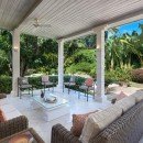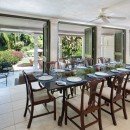 The large, covered outdoor patio overlooks the pool and it is where most guests relax when not by the pool enjoying the Barbados sun. At one end there is a dining area with a wrought iron table that comfortably seats six, and is ideal for breakfast, lunch and informal dining in the evenings. At the other end is comfortable informal seating for eight and is the perfect setting for reading your novel out of the sun during the day and the ideal meeting place for drinks prior to meals.