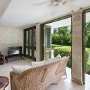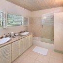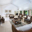 The spacious vaulted Living Room is a blend of old Barbados mahogany furniture & coral stone with the more modern bamboo. The security louver shutters, which open fully on the North & South sides, give the room the feeling of total openness as either way the view is of the luscious gardens. The marble dining table seats twelve and is ideal for formal entertaining.