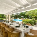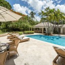 An eight-bedroom gem, the villa is surrounded by mature gardens and grounds, with an array of stately palms offering privacy, but also just steps down to your private beachfront. Naturally, with amenities like the large and private pool, you may never want to stray too far! The pool itself is flanked on several sides by the stunning gardens and velvety lawns, but also by a large furnished terrace. This leads to the luxuriously appointed verandah which is an open-air lounge that takes you into the marbled halls of the great room. With formal dining, a casual living room and entertainment space and truly superior décor, it is sure to inspire.