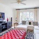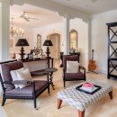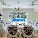 The pool terrace can serve as the heart of it all with its sun decks and enormous pavilions that have a full outdoor kitchen, al fresco dining room and lounge with bar. You can also savor the scenery from the stylish living room that opens out to the pool area. The interiors are incredibly chic and use a palette of white, black and animal prints to make a truly remarkable effect.