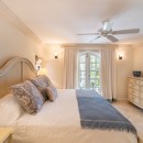 Bedroom 1: Master bedroom with a king-size bed, ceiling fan, A/C, WiFi, private balcony, and en-suite bathroom with bathtub, shower, vanity and WC. 2 guests maximum.