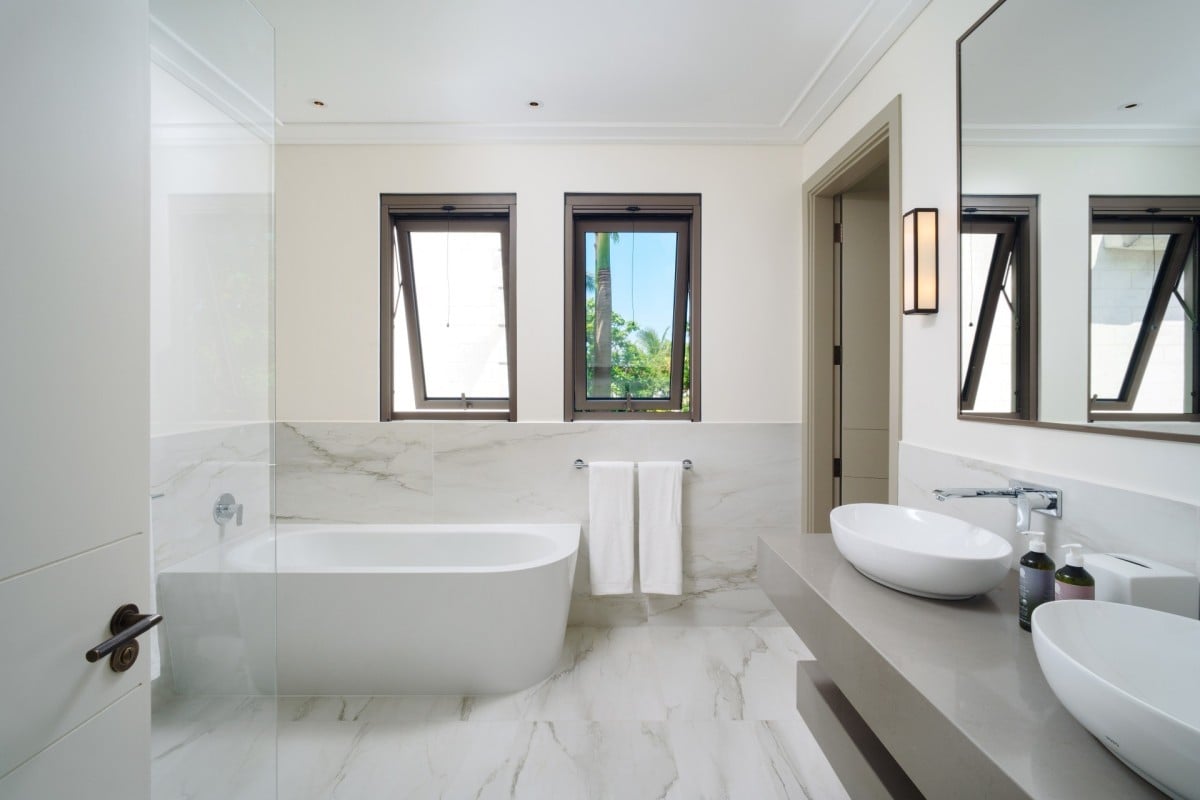Every element of Sea Grove House has been thoughtfully curated, from cool stone floors and soft neutral tones to natural textures that balance contemporary luxury with relaxed Caribbean style. Outdoors, the expansive beachfront terrace features shaded lounging areas and al fresco dining, overlooking the pool and a secluded stretch of sand — a rare and highly sought-after feature on Barbados’ West Coast.