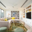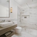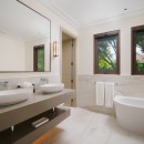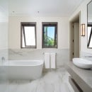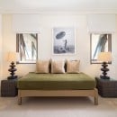 The primary bedroom also includes an adjoining snug with views across the infinity pool, perfect for quiet reading or working in comfort. A second snug along the hallway offers flexible use as a home office or relaxed lounge area.