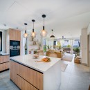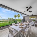 The gourmet kitchen has premium appliances and a breakfast bar, perfect for preparing island-inspired meals or entertaining guests. Adjacent to it, the dining area offers a warm, intimate space for shared moments with family and friends.