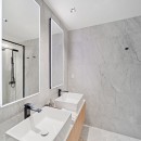 Each ensuite bedroom is designed with privacy and comfort in mind. The master suite, boasting direct patio access and panoramic sea views, offers a serene escape. The two additional bedrooms at the rear of the unit are equally spacious and well-appointed, each featuring a private bathroom. For added convenience, a powder room is located near the entrance, along with a full laundry room for effortless everyday living.