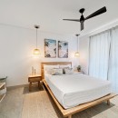 Bedroom 1: Master bedroom with a queen-size bed, ceiling fan, A/C, WiFi, TV, ocean view, access to the terrace, and en-suite bathroom with shower, double vanity and WC. 2 guests maximum