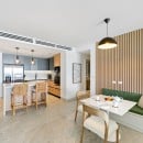 The fully equipped open-plan kitchen features premium appliances and a breakfast bar, ideal for preparing casual meals or entertaining. An adjacent dining area provides a welcoming setting for enjoying meals with family and friends.
