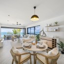 The open-concept design of Allure 205 is bathed in natural light, thanks to expansive floor-to-ceiling windows that frame uninterrupted views of the landscape. The spacious living area features sleek, contemporary furnishings and custom details, creating a stylish retreat where you can unwind while soaking in the beauty of the beach. Whether relaxing indoors or enjoying the ocean breeze on your private patio, the serene views are always within reach.
