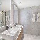 Each of the three ensuite bedrooms is designed for ultimate privacy and relaxation. The master suite, with its sea-facing views, serves as a serene retreat, complete with a spa-like ensuite bathroom. The additional two bedrooms are equally spacious, featuring ample closet space, ensuite bathrooms, and in-room TVs for added comfort. A stylish powder room at the entrance and a full laundry room add to the home’s convenience.