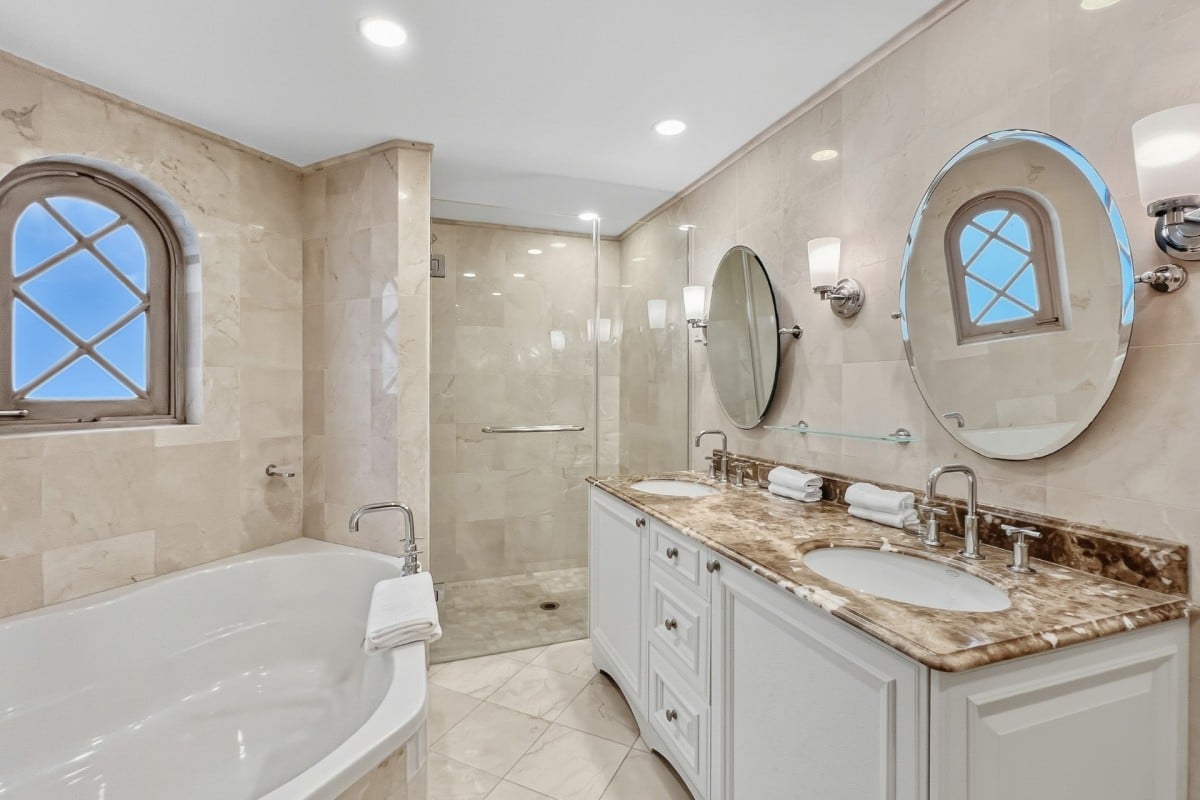 All three bedrooms are ensuite, offering comfort and privacy for families or groups of friends. The primary suite features a king-size bed and opens directly onto the terrace with ocean views. The second bedroom also offers a king bed, while the third includes twin beds that can be converted into a king, providing flexible sleeping arrangements.