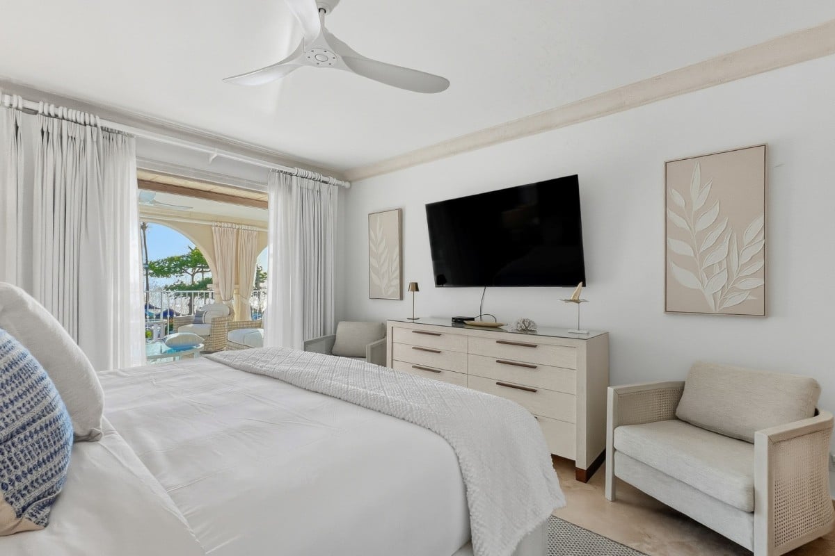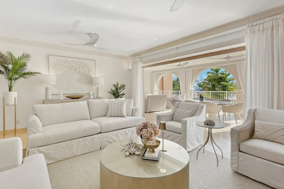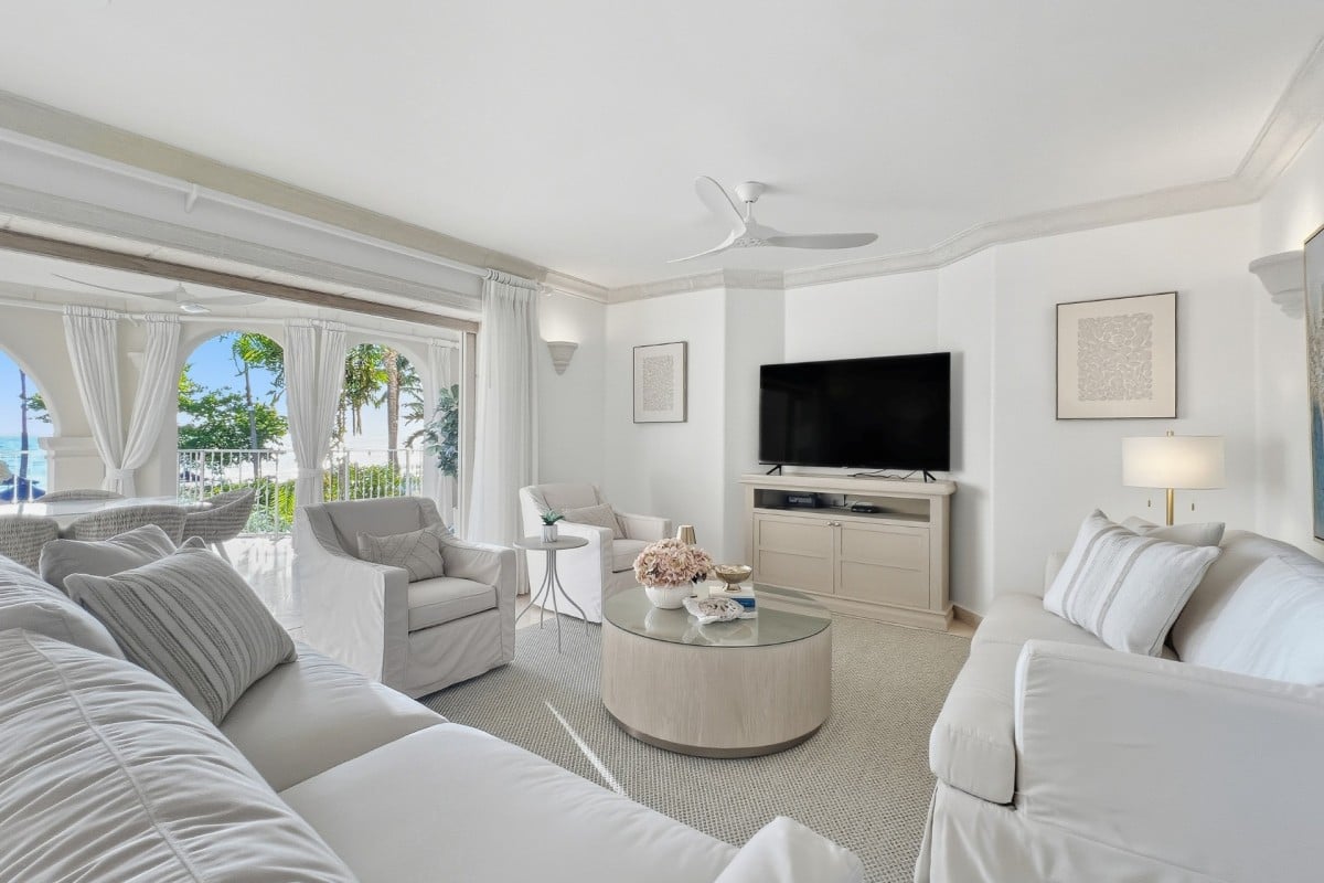 Located along Barbados’ sought-after Platinum Coast, St. Peter’s Bay 208 is a three-bedroom beachfront condominium designed for relaxed, easygoing island living. Positioned one level above the ground floor, the residence enjoys open Caribbean Sea views from its private terrace while remaining just steps from the beach and resort amenities.