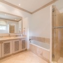 Bedroom 1: Ground floor bedroom with a double bed, WiFi, TV, A/C, ceiling fans, walk-in closet and en-suite bathroom with bathtub, shower, vanity and WC. 2 guests maximum.